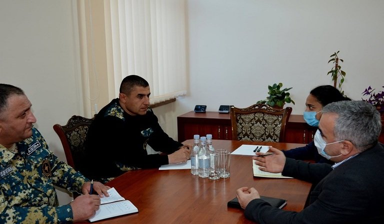 ԱՀ ԱԻ պետական ծառայության տնօրեն, գնդապետ Մեխակ Արզումանյանն այսօր ընդունել է Արցախում Կարմիր խաչի միջազգային առաքելության ներկայացուցիչներ Ռոման Շահրամանյանին և Էման Էիդին: