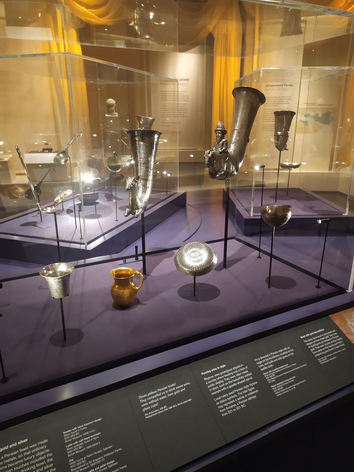 Ցուցահանդեսը Ք․ ա․ VI-I դդ․ Աքեմենյան կայսրությունից մինչ հելլենիստական ժամանակների շքեղության, իշխանական խորհրդանիշների, դրանց փոխակերպումների, ինչպես նաև քաղաքական ու պատմամշակութային նշանակության մասին է։ Արմավիրից գտնված ոսկյա կրծքազարդը, կավե ցլակերպ ծիսանոթը (Ք․ա․ VI-V դդ․), Էրեբունուց հայտնաբերված արծաթյա հեծյալի ծիսանոթը (Ք․ ա․ VI-IV դդ․), Արտաշատից գտնված կավե արջակերպ ծիսանոթը (Ք․ ա․ I դ․) առաջին անգամ են ցուցադրվում Միացյալ Թագավորությունում և իսկական բացահայտում են դարձել Բրիտանական թանգարանի մասնագետների համար։