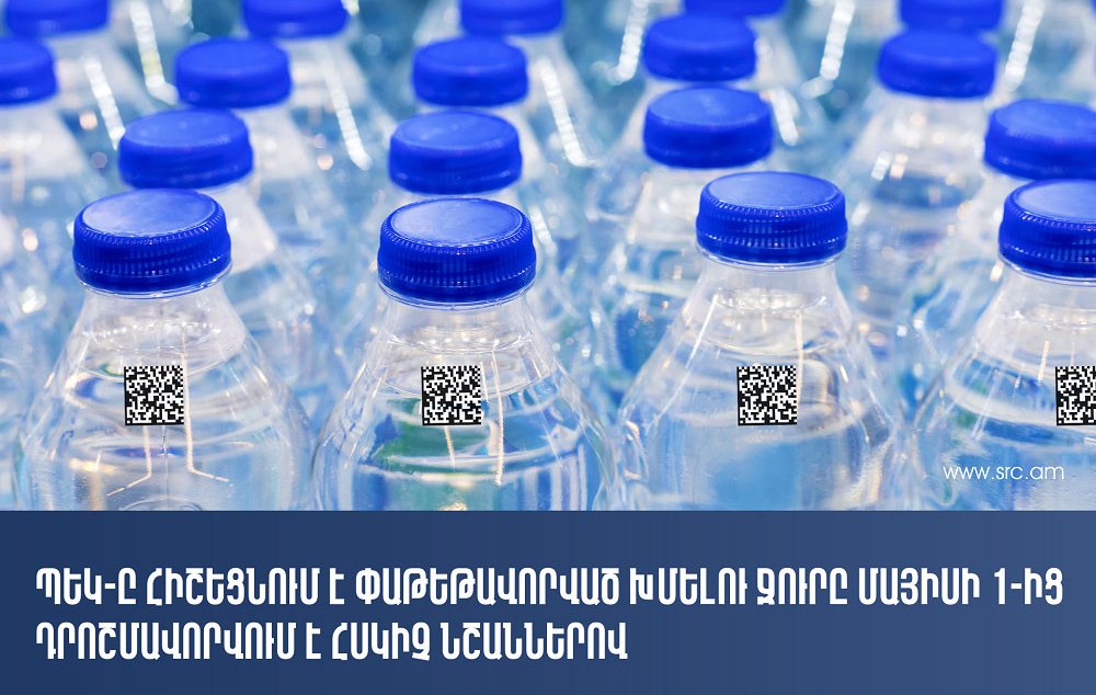 Պետական եկամուտների կոմիտեն հիշեցնում է, որ Հայաստանի Հանրապետությունում 2024 թվականի մայիսի 1-ից գործում է փաթեթավորված խմելու ջրի հսկիչ (նույնականացման) նշաններով դրոշմավորման պարտադիր պահանջը։