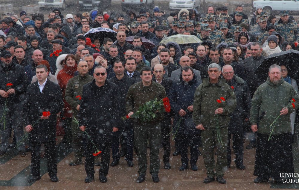Արցախի Հանրապետության նախագահ Արայիկ Հարությունյանը բարձրաստիճան պետական այրերի և Արցախի հոգևոր թեմի առաջնորդ Գերաշնորհ Տ․ Վրթանես եպիսկոպոս Աբրահամյանի հետ փետրվարի 20-ին մասնակցել է Արցախյան շարժման 33-րդ տարեդարձին նվիրված երթին, ծաղիկներ խոնարհել Ստեփանակերտի քաղաքային հուշահամալիրում: