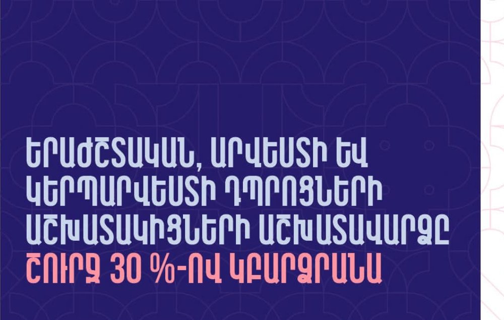 2025թ. հունվարի 1-ից համայնքային երաժշտական, արվեստի և կերպարվեստի դպրոցների աշխատակիցների աշխատավարձը շուրջ 30 %-ով կբարձրանա: Այս մասին հայտնում է Երևանի քաղաքապետ Տիգրան Ավինյանը։