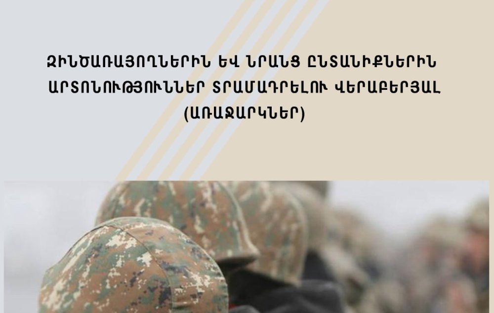 Մարդու իրավունքների պաշտպանը հրապարակել է արտահերթ զեկույց զինծառայողներին և նրանց ընտանիքներին արտոնություններ տրամադրելու վերաբերյալ։
