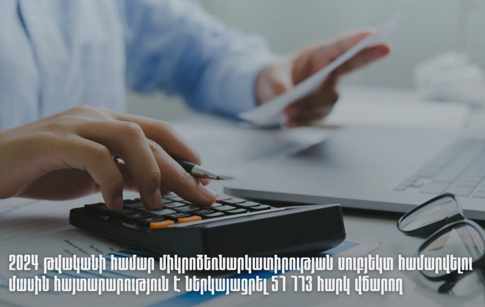2024 թվականի համար միկրոձեռնարկատիրության սուբյեկտ համարվելու մասին հայտարարություն է ներկայացրել 57 773 հարկ վճարող։