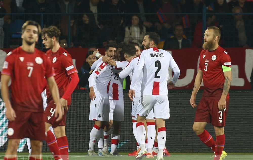 Ֆուտբոլի Հայաստանի ազգային հավաքականն ՈՒԵՖԱ-ի Ազգերի լիգայի խաղարկության անցումային փլեյ-օֆֆի դիմակայության առաջին խաղում Երևանի Վազգեն Սարգսյանի անվան «Հանրապետական» ստադիոնում 0-3 հաշվով պարտվեց Վրաստանի թիմին: