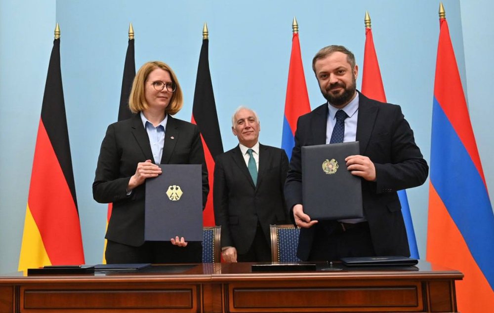 Գերմանիայի նախագահ Ֆրանկ-Վալտեր Շտայնմայերի՝ Հայաստան կատարած պաշտոնական այցի շրջանակում նախագահական նստավայրում ՀՀ էկոնոմիկայի նախարար Գևորգ Պապոյանը՝ հայկական կողմից, Հայաստանում Գերմանիայի դեսպան Կլաուդիա Բուշը՝ գերմանական կողմից այսօր ստորագրել են «Հայաստանի Հանրապետության կառավարության և Գերմանիայի Դաշնային Հանրապետության կառավարության միջև ֆինանսական համագործակցության մասին» համաձայնագիր։ Այս մասին տեղեկացնում են ՀՀ էկոնոմիկայի նախարարությունից: