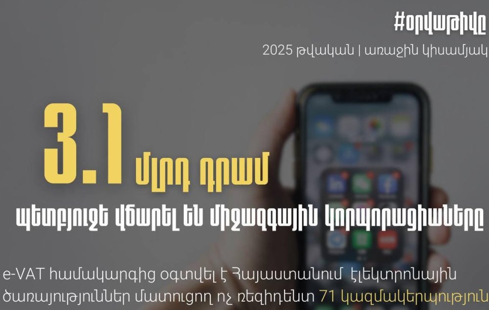 Google, Facebook, TikTok, Spotify, Amazon, Netflix, Ebay և այլ կորպորացիաների ծառայություններից օգտվելով՝ Դուք մասնակցում եք նաև Հայաստանի պետական եկամուտների ավելացմանը»,- նշված է գրառման մեջ: